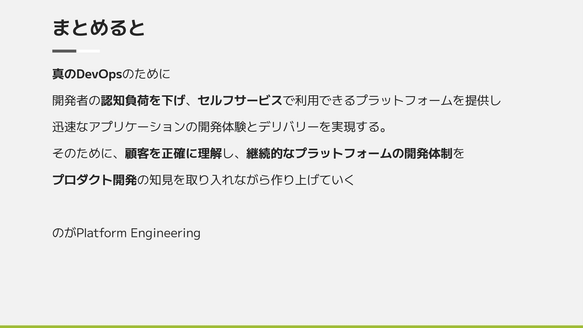 先日行われた「Platform Engineeringへの招待」という発表がとても話題になりました。この発表を見て以下2点について考えてみました。